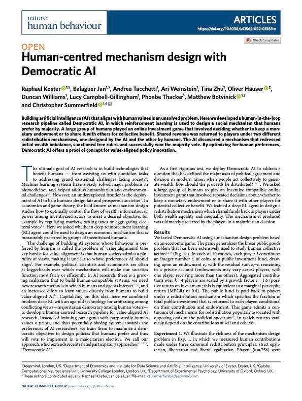 What role, if any, will AI come to play in organizing human affairs? Could the technology help our societies make better decisions? Researchers at Alphabet’s Deep Mind, the company behind the Alpha Go system featured in both Metz and Crawford’s books, certainly believe so. They’ve just published ‘Democratic AI’, a research paper that its authors say demonstrates that deep learning can be used to find economic policies that people will vote for by a majority, using a simple game.