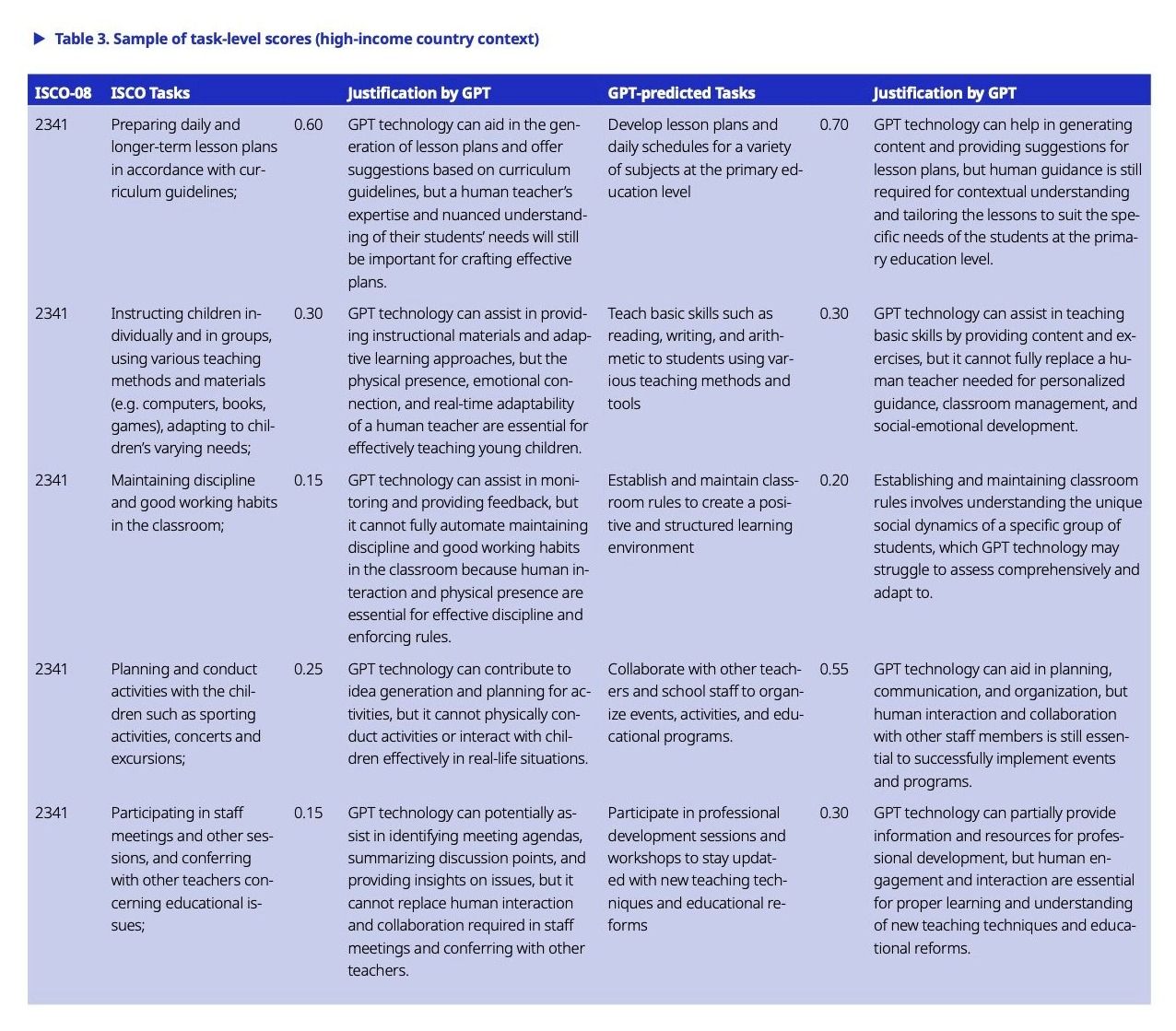 The study’s findings were based on extensive use of the ILO’s datasets and of the International Standard Classification of Occupations (ISCO-08), which categorizes the “set of tasks and duties performed” into 436 individual “unit groups” or specific occupations. Through an application programming interface (API), the ILO researchers matched them against the tasks GPT-4 is currently able to perform, thus measuring the potential level of exposure to the technology and the risks associated with its introduction in the workplace.